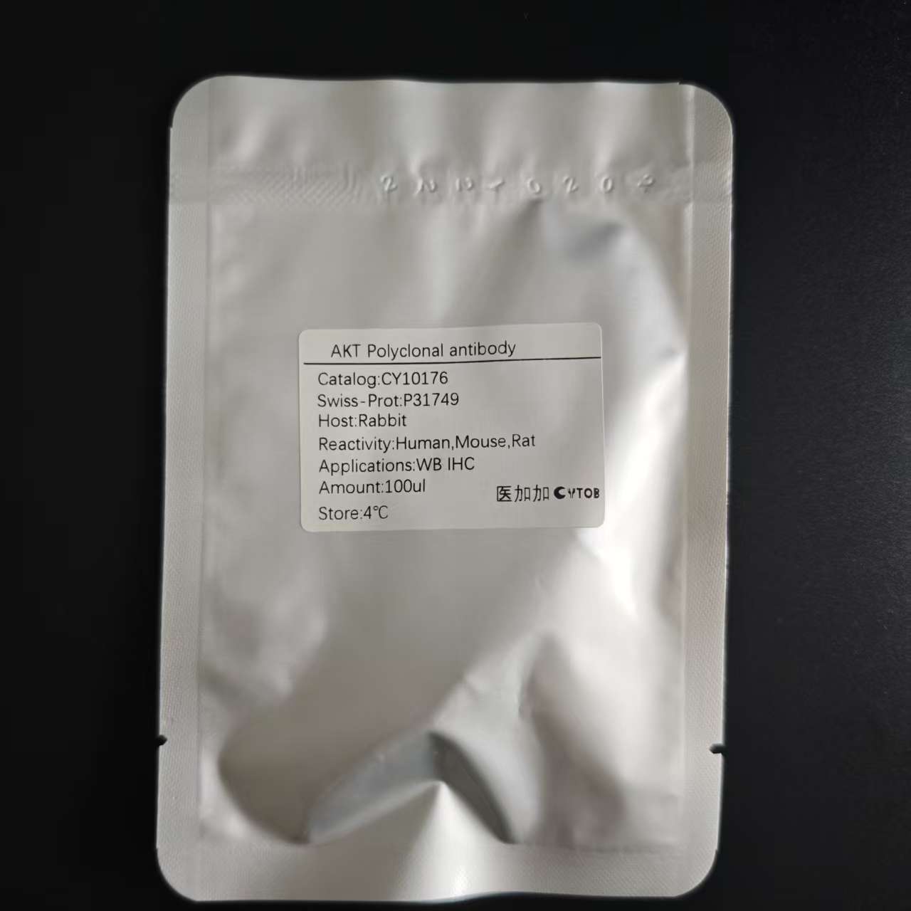 Anti-AKT antibody was affinity purified antibody was prepared by repeated immunizations with a synthetic peptide corresponding to an internal region of human AKT1 protein. A residue of cysteine was added to facilitate coupling.